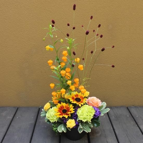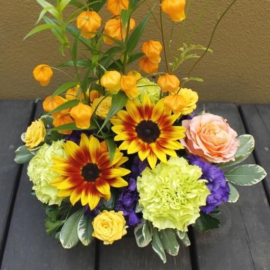 秋の日のこもれびの様な温かみのあるアレンジメント。