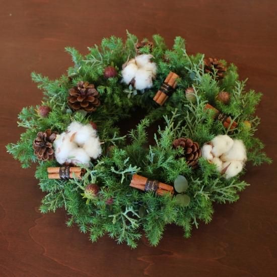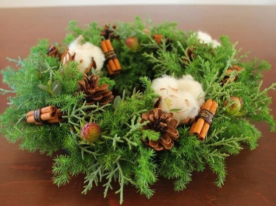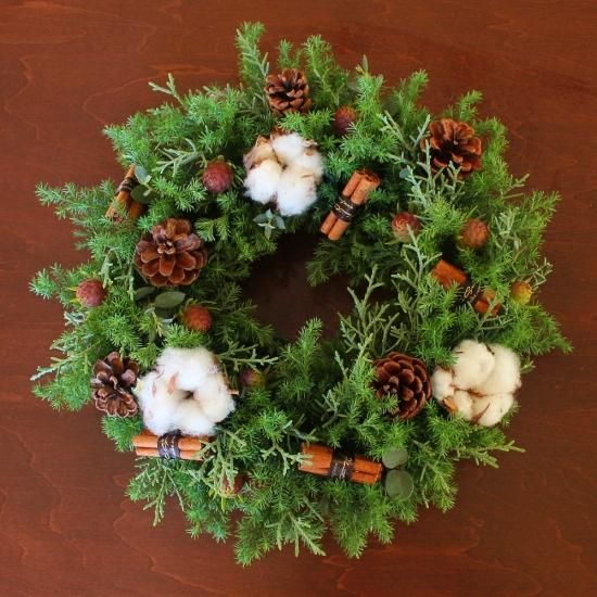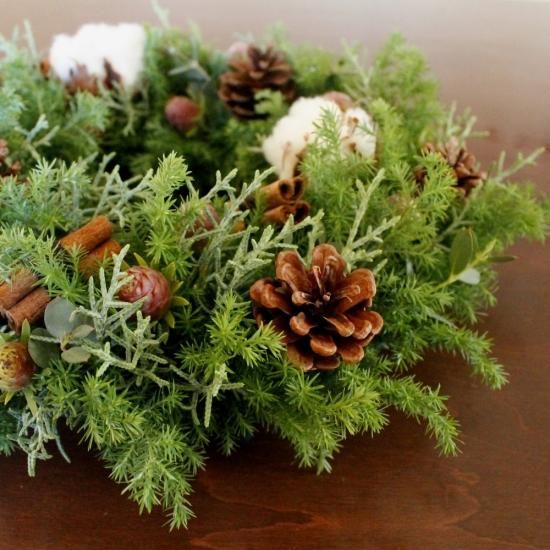 グリーンと実物だけのリースですよ。あえてお花を使わずシンプルに仕上げました!